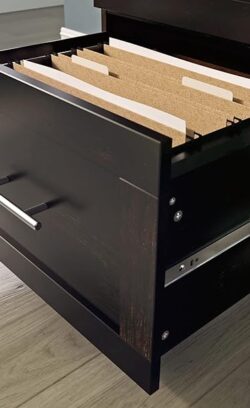 - 2 drawers with ball bearings and full-extension slides. Hang rails accommodate letter- and legal-size files.