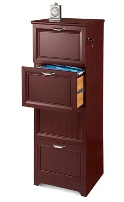 - Keeping your important documents organized and secure is easy with the Realspace 2-Drawer Vertical File Cabinet. This file unit is made from strong and durable engineered wood and features a locking top drawer that is ideal for sensitive documents. The cabinet offers ball bearings to help the drawers glide smoothly, and the full-extension drawer design means you’ll easily be able to reach files in the back.