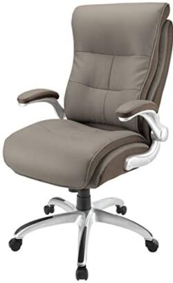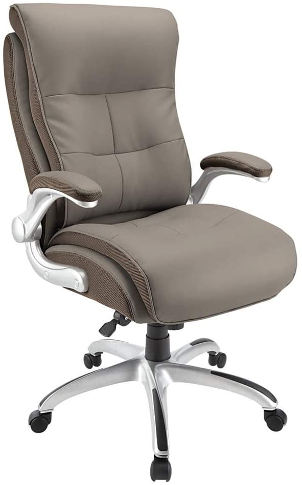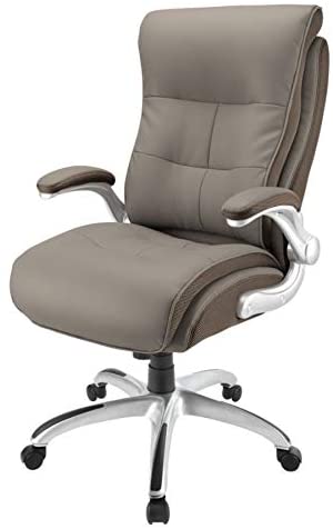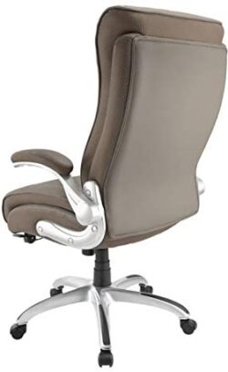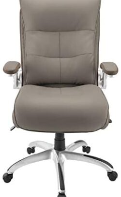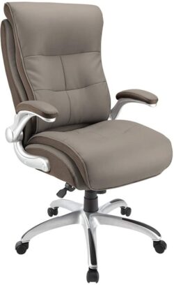 From your first client call until you submit your last report, maintain your comfort with the Realspace Ampresso Big And Tall High-Back Office Chair. The bonded leather upholstery offers a soft feel, while the deep, layered body pillows and coil-spring technology provide the plush cushioning you need to stay focused on the tasks at hand. Smoothly move from 1 task to another thanks to the high-back computer chair’s swiveling design and dual-wheel casters. The armrests flip up and out of the way as well when you need to get up from your desk