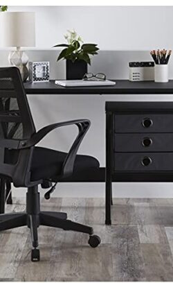 Stay productive in demanding work environments with this Realspace Jaxby mid-back task chair. The fixed armrests help take the load off your shoulders, encouraging proper posture, while the tilt and height adjustment mechanisms let you create custom seating. This padded mid-back task chair features a 5-star base with casters for smooth mobility around your desk. Waterfall seat cushion takes the pressure off your legs. 360-Degree Swivel allows you to turn in every direction. ANSI/BIFMA Compliant – This product has been tested and verified for compliance with rigorous performance requirements and safety standards related to specific furniture products. Suitable as an office home chair or as a Student desk chair.