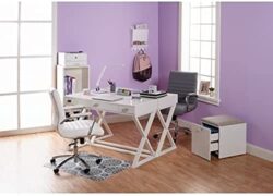 If you are looking for a writing desk for a small space, look no further than the Realspace Keri 48inW Writing Desk. With flat satin hardware, the contemporary home office desk adds a stylish look to your workspace. You can spread out papers, your laptop and other essentials on the spacious worksurface. You will also be able to organize your workday materials and tools with this computer desk with storage, which features 3 desk drawers to hold your items. Engineered wood construction offers durability. 3 desk drawers. Hardware features a flat satin appearance. Small desk (48in wide or smaller) – recommended for a small or shared space. Assembly required. Features a white finish with silver hardware. Tested to meet ANSI/BIFMA Performance Standards – Manufacturer testing has been conducted on this product to meet specific performance requirements and safety standards set forth by the American National Standards Institute (ANSI) and the Business and Institutional Furniture Manufacturers. This product is heavy and/or oversized and may need more than one person to handle.