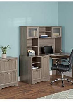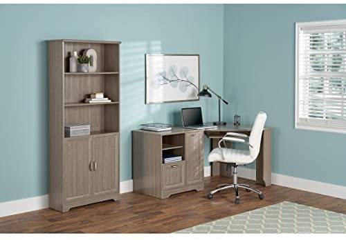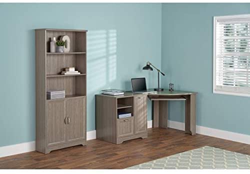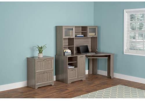 Create an office that fosters productivity with this Magellan Collection corner desk at the heart of it all. The spacious desktop provides ample room to tackle large projects, and the storage areas help you stay organized. The cabinet with an adjustable shelf can be used to house your tower, and the open shelving is great for stashing notebooks, blank discs and other office supplies. Thanks to the file drawer, it’s easy to keep important documents by your side.