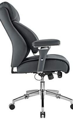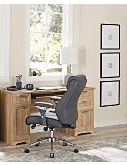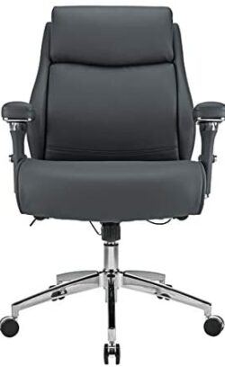 Update your office setting with this Realspace Modern Comfort mid-back chair. The waterfall seat cushion minimizes knee strain during long sessions, and the coil-spring technology provides comfort. Pneumatic adjustment lets you easily configure seat height. Featuring a lumbar feature, this Realspace Modern Comfort mid-back chair cradles your back for sturdy support, and the Keera leather fabric pairs a stylish touch with durability. Features a waterfall seat cushion to help improve circulation and enhance comfort. Lumbar provides support and helps improve posture. Pneumatic height adjustment allows for simple up and down customization. Recommended for performance use 6-8 hours per day. Weight capacity tested to support 275 lb. ANSI/BIFMA Compliant – This product has been tested and verified for compliance with rigorous performance requirements and safety standards related to specific furniture products.