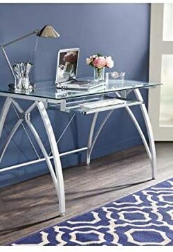 Realspace® Vista 48″ W Glass Computer Desk, Silver